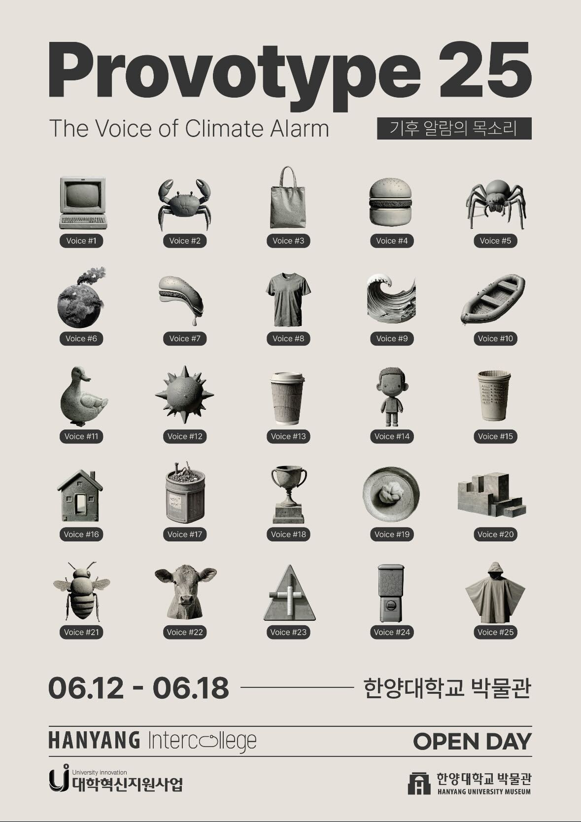 첫 결실로 선보이는 <Provotype 25>은 시카고 대학의 둠스데이 시계(Doomsday Clock)에 영감을 받아 기후문제에 대해 시스템씽킹, 디자인씽킹, 아티스틱씽킹을 통해 일상에 스며든 환경 문제의 긴급성을 일깨우며, 관람객과 함께 ‘왜(Why)’라는 질문을 던지고, 행동으로 옮기는 새로운 문화를 경험하도록 기획되었습니다.