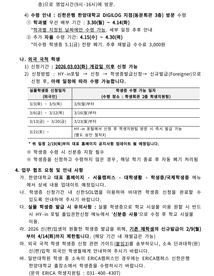 학생증 발급 안내 (Student ID Card Issuance Guide)