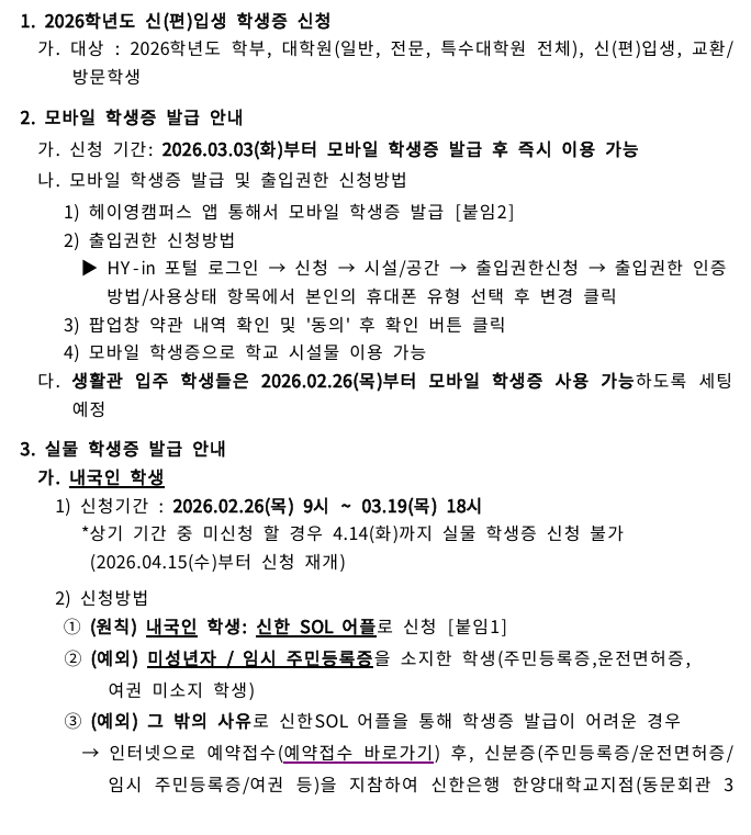 학생증 발급 정보를 아래와 같이 안내드리니, 참고 부탁드립니다.
