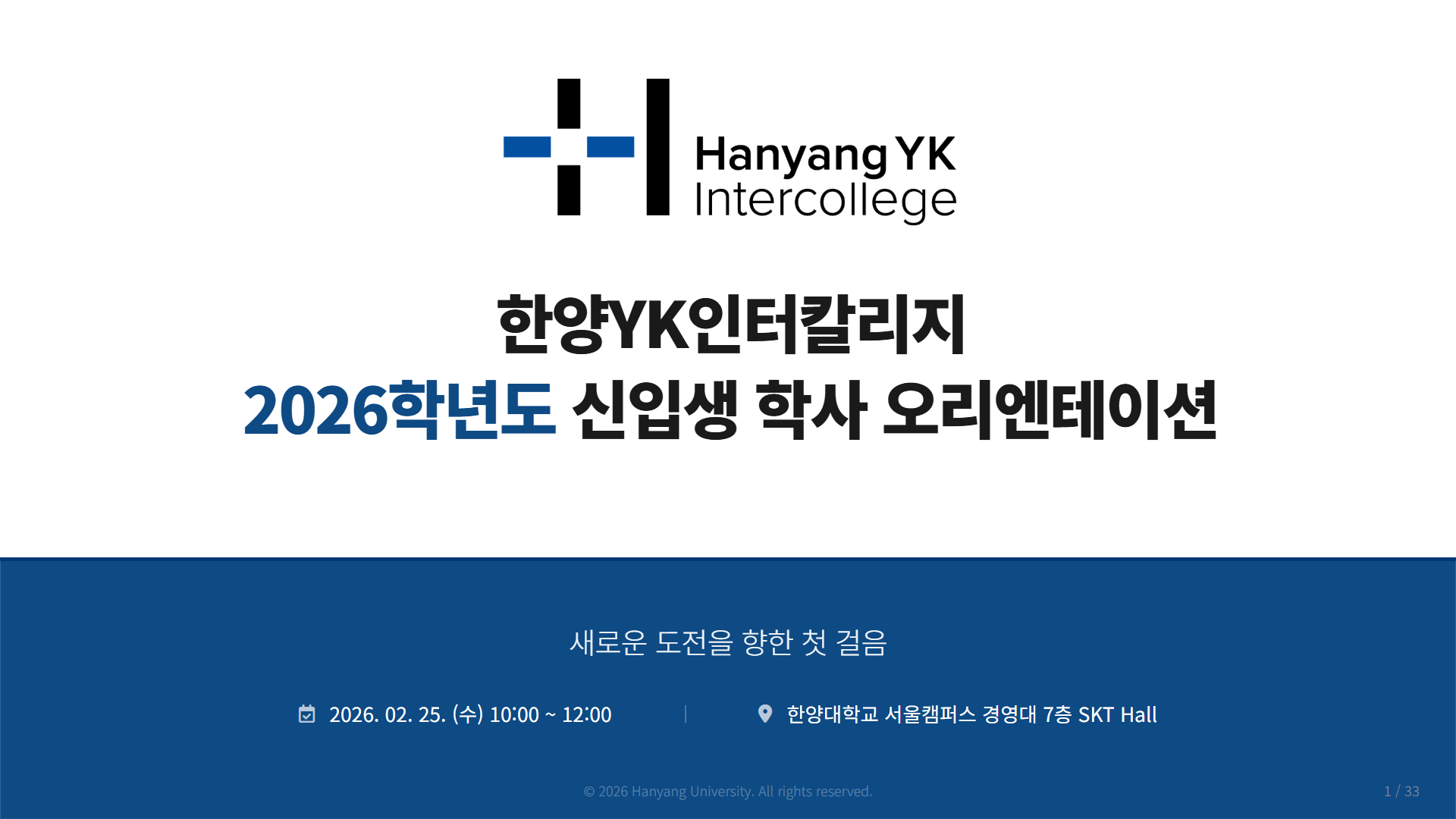2026 한양YK인터칼리지 신입생 대상 학사오리엔테이션 안내 자료(26.02.25)