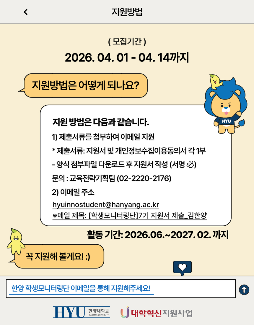 붙임    1. 2026년 한양대학교 대학혁신지원사업 학생모니터링단 7기 운영(안)